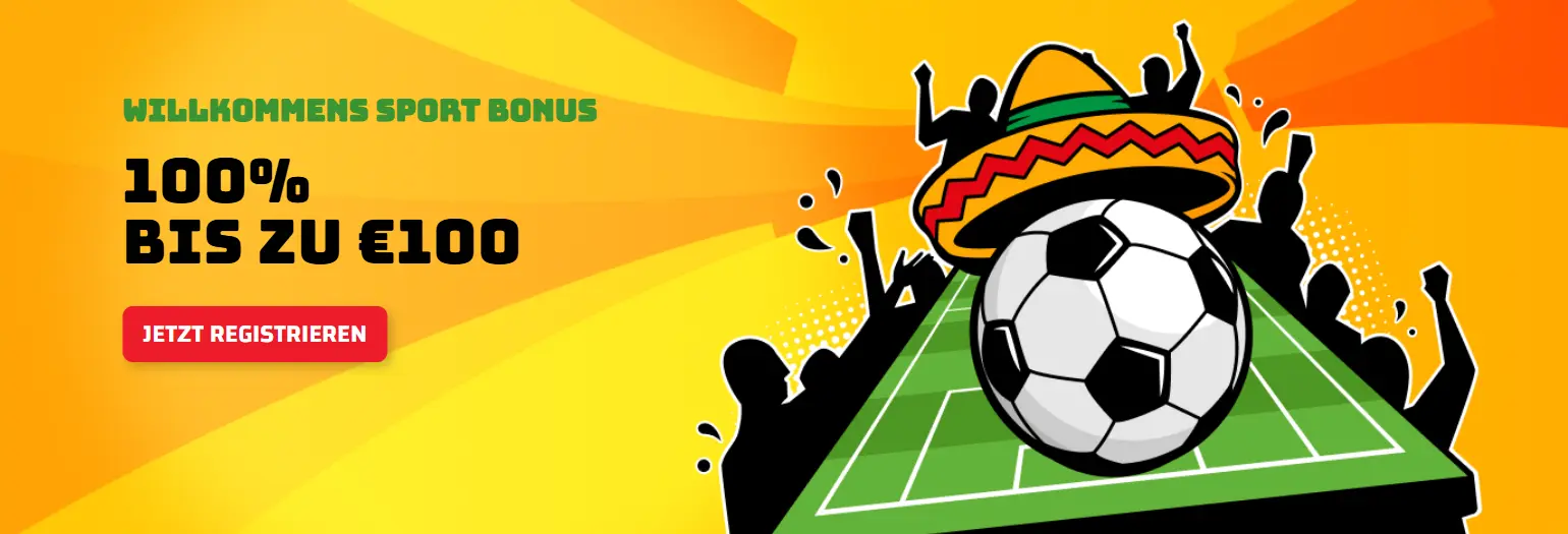 Neben klassischen Casino-Promotions überzeugt Sombrero Spins auch im Bereich der Sportwetten. Neue Sporttipper erhalten einen 100 % Sportbonus bis zu 100 €, kombiniert mit einer 20 € Gratiswette. Wiederkehrende Aktionen wie Midweek-Reload (50 % bis 100 €) oder Weekend Sport Reload bieten faire Umsatzbedingungen von 6x bei Mindestquoten von 1.7. Zusätzlich stehen Funktionen wie Cash Out oder 0 % Marge auf ausgewählte Spiele zur Verfügung, was den Sportbereich besonders attraktiv für strategische Spieler macht.