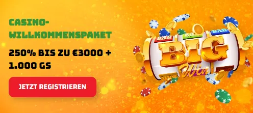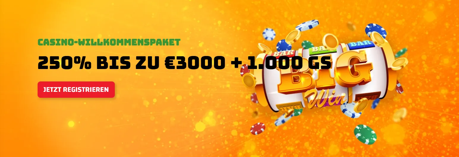 | Willkommensbonus | 250 % bis 3.000 € + 1.000 FS |