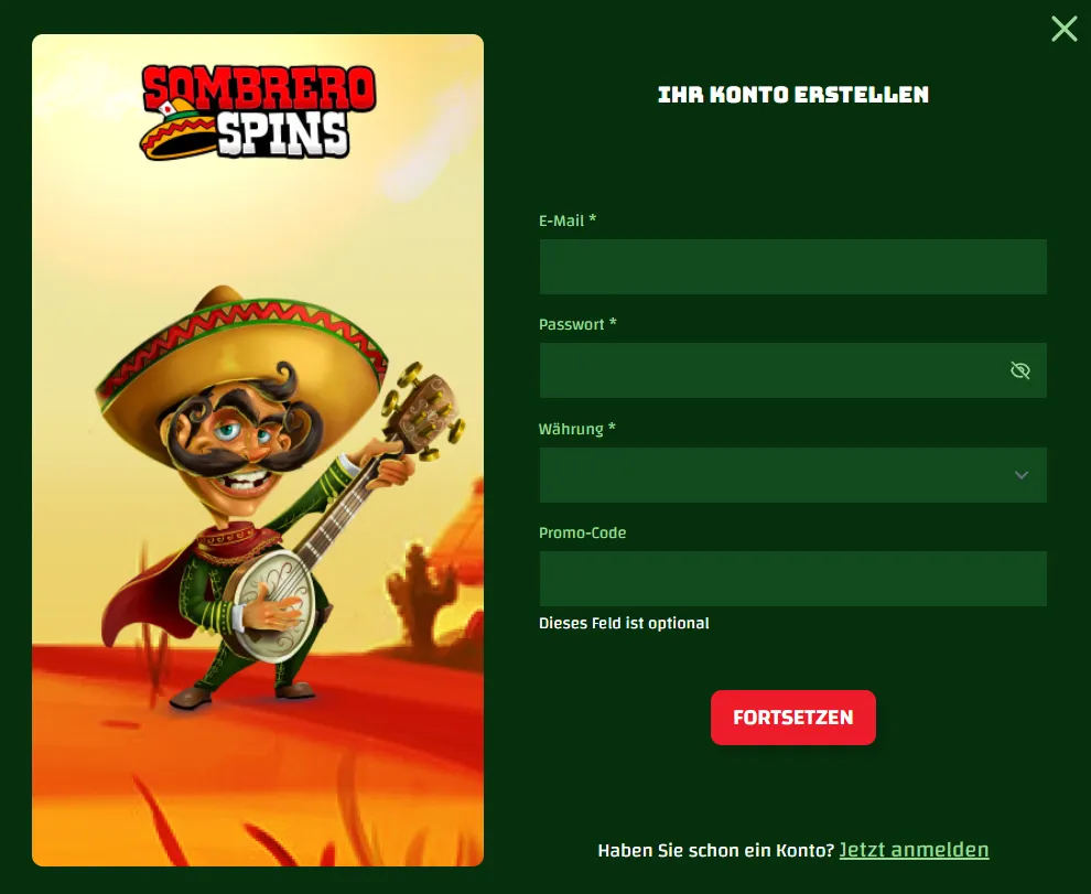 Die Registrierung im Sombrero Spins Casino erfolgt in wenigen Schritten: Website aufrufen, auf „Registrieren“ klicken, persönliche Daten wie E-Mail, Passwort und Währung eingeben und das Konto über den Bestätigungslink aktivieren.